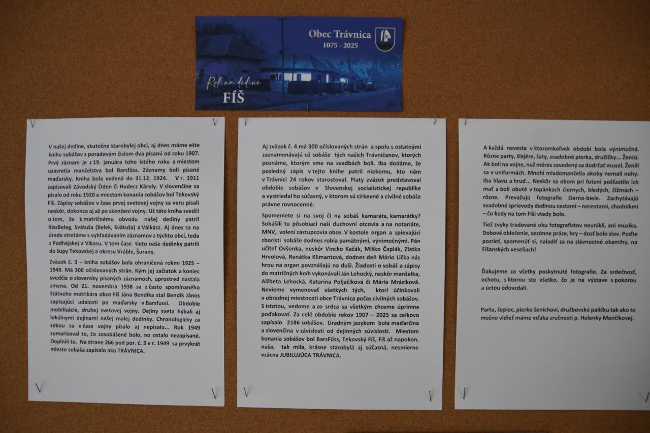 Táto výstava bola súčasťou osláv 950. výročia prvej písomnej zmienky o obci Trávnica, ktoré sa konali 13. a 14. septembra 2025 v kultúrnom dome v duchu Fíšanského veselia.