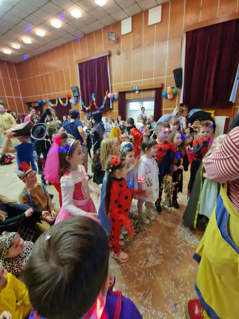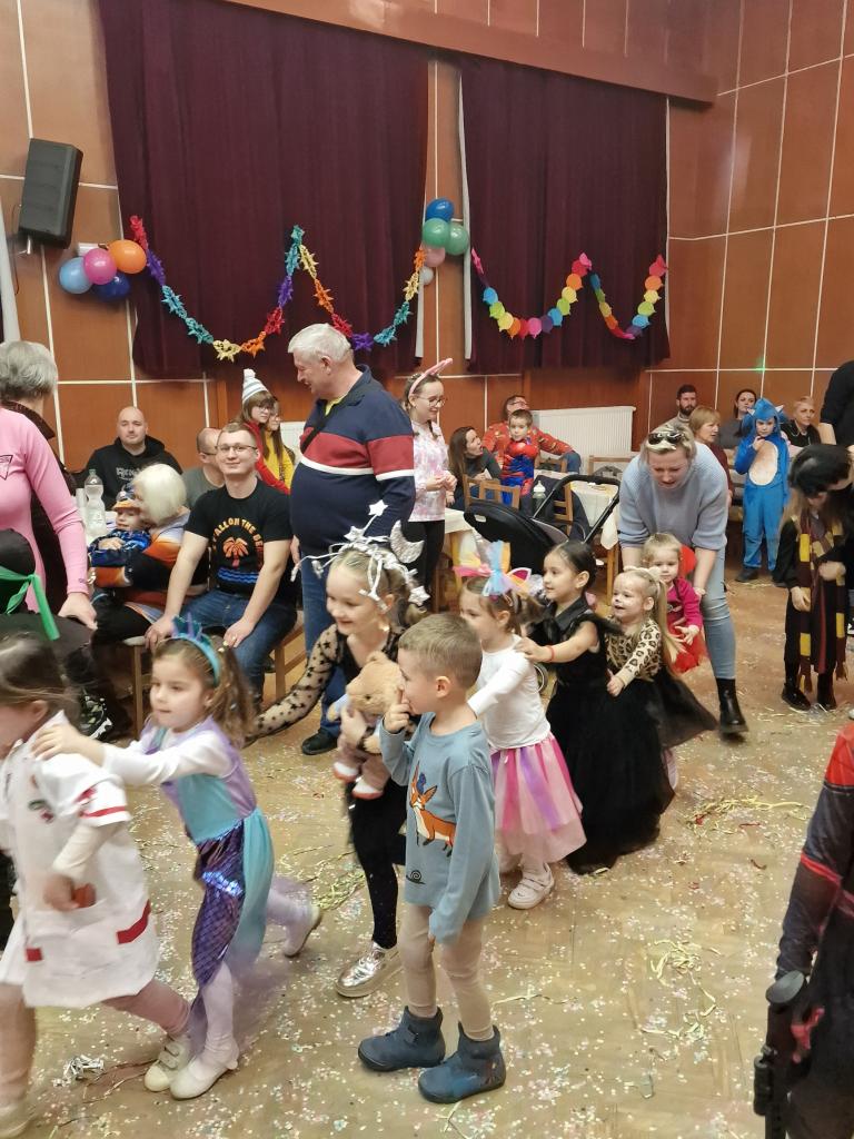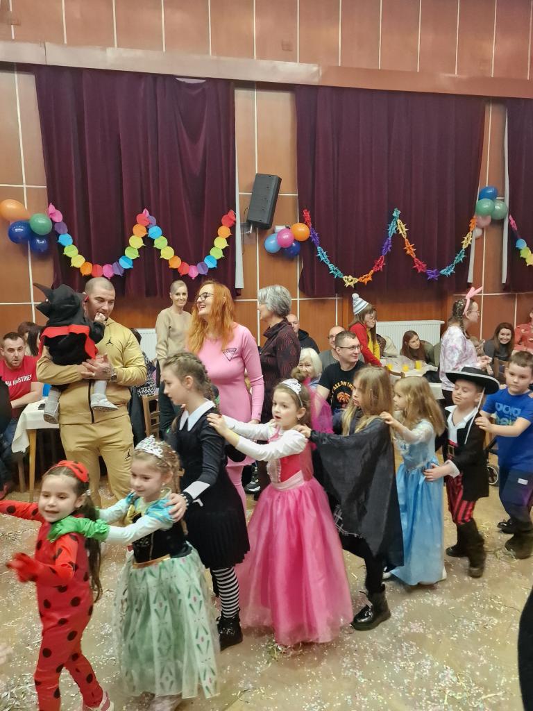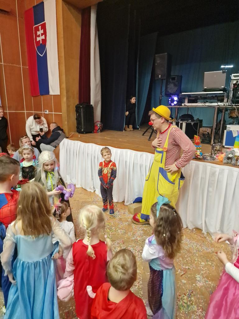 Deti zabával šašo Ľuboš a DJ Eno. Pripravené boli aj fašiangové dobrotky, džúsik a náladu znásobila aj nachystaná tombola.